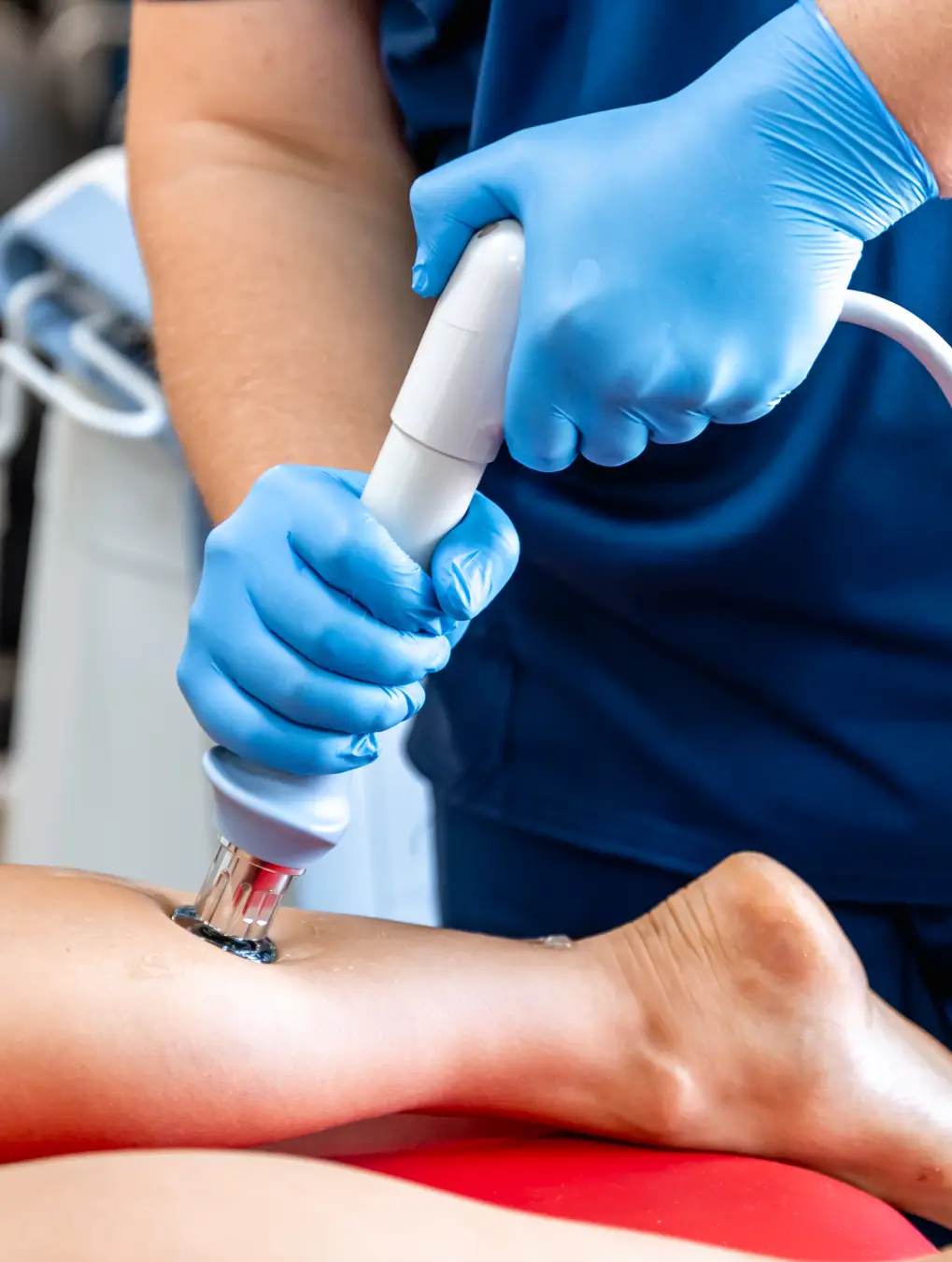 When you arrive at our Shockwave Therapy clinic, a technician applies a conductive gel to the skin. The applicator is then moved in a circular or linear motion over the target area. Most sessions at a Shockwave Therapy clinic last between 10 and 15 minutes. While the sensation is intense, it is generally tolerable, and the intensity can be adjusted based on your feedback.
